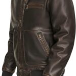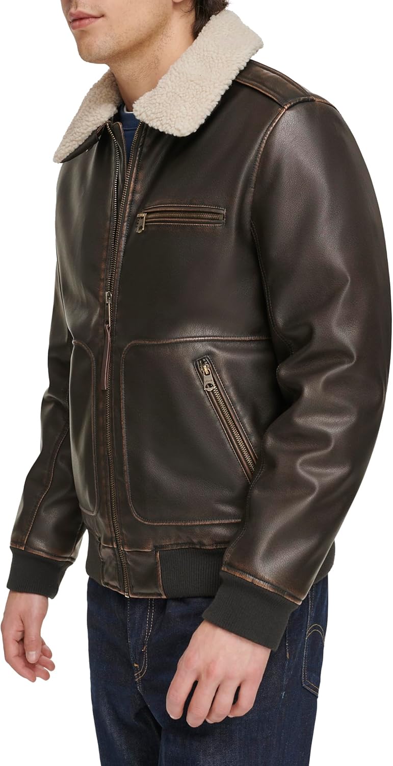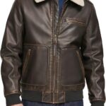 Men’s Faux Leather Aviator Bomber Jacket with Sherpa Collar