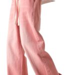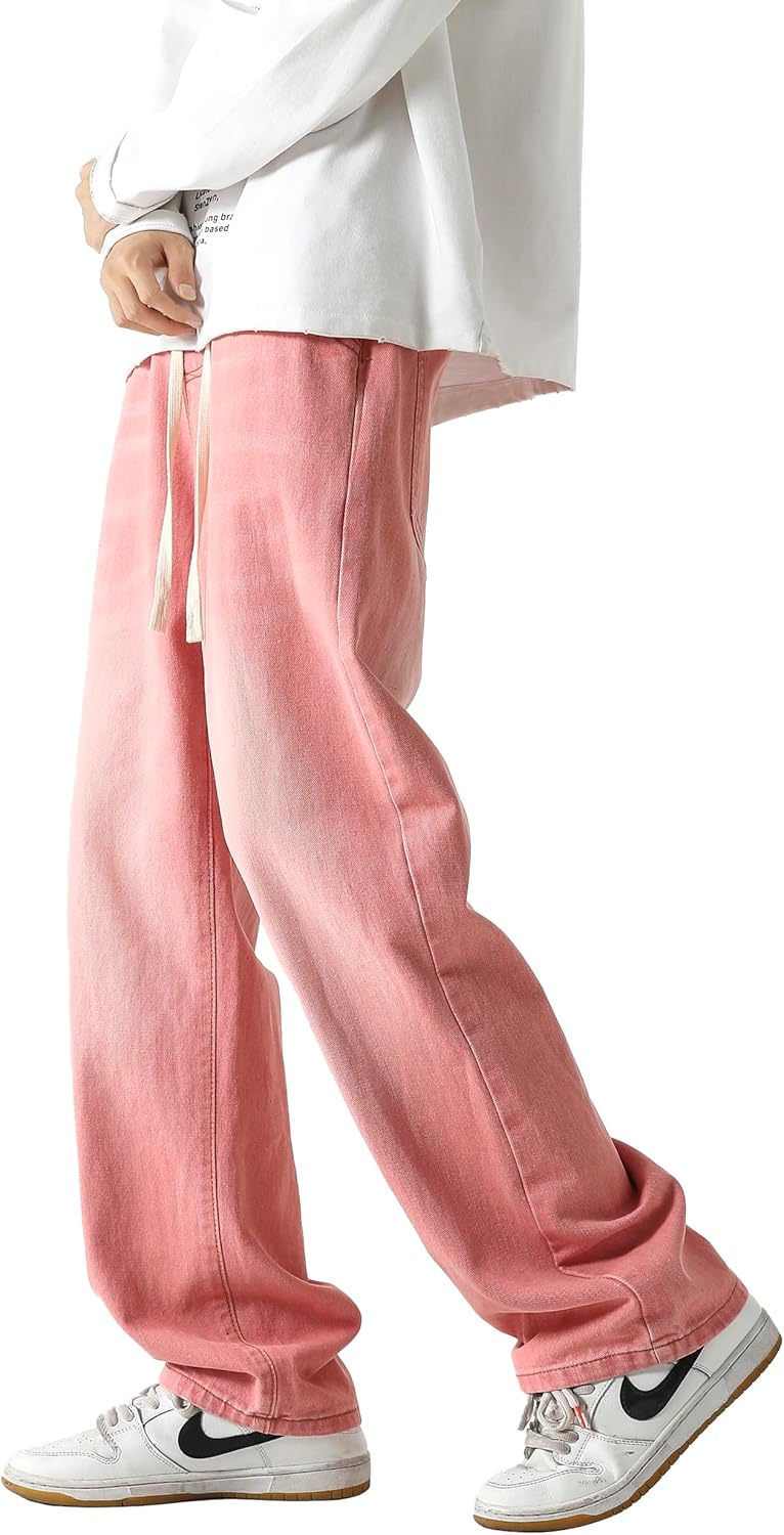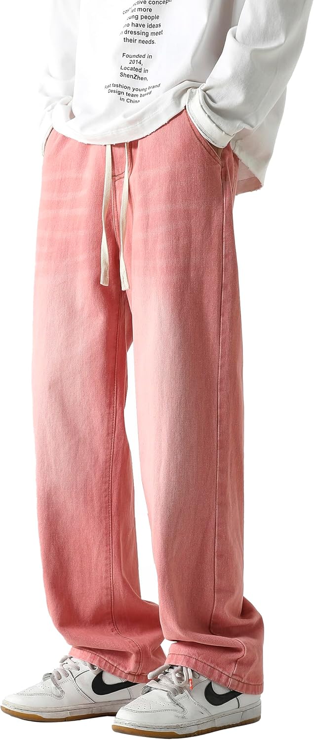 - Features of color 02: elastic waist, drawstring closure, mid waist, regular thickness, baggy type, wide straight leg, solid color, no stretch.